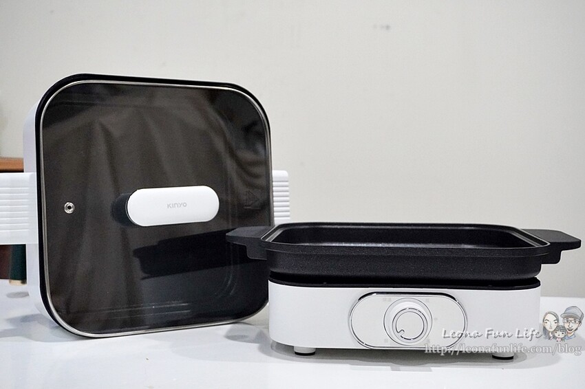 KINYO多功能料理鍋一共分主機、大容量深鍋、油切烤盤、強化玻璃蓋、說明書和電源線,