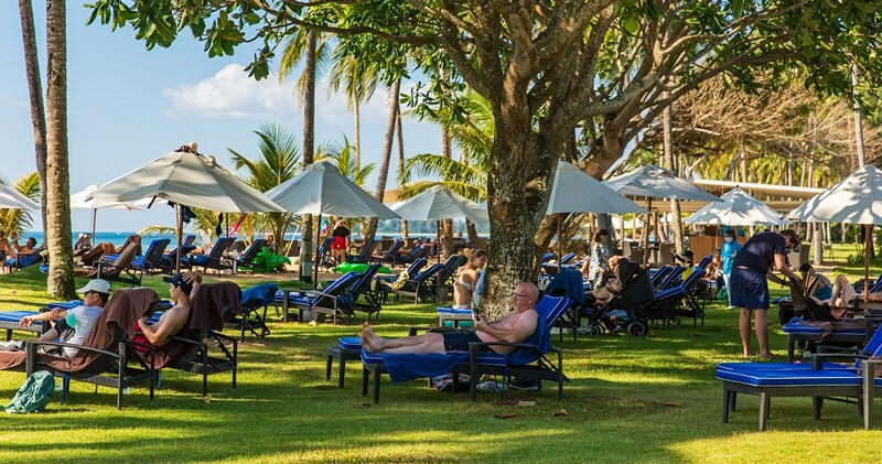 整排的沙灘椅、陽傘,甚至還有吊床,住在這就要像爛泥一樣...吃飽睡、睡飽喝,喝完曬太陽,那都不要去,什麼事都不要做。