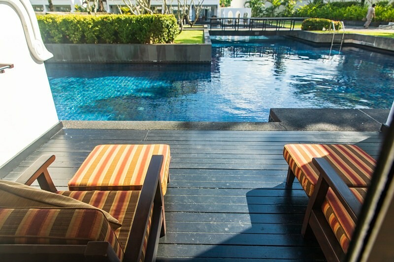 房間算是蠻寬敞舒服,略帶悠閒設計風,推開落地窗就是泳池和兩張懶人沙發椅,帶上一本書即便一頁也沒翻就睡覺也是一種享受。
