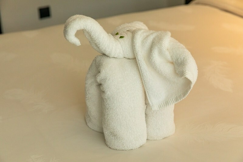 床上的迎賓大象好可愛哦,個人覺得泰國絕對是全世界最會折毛巾的國家...,什麼大象、海龜、海豚、螃蟹什麼都有,什麼都不奇怪。