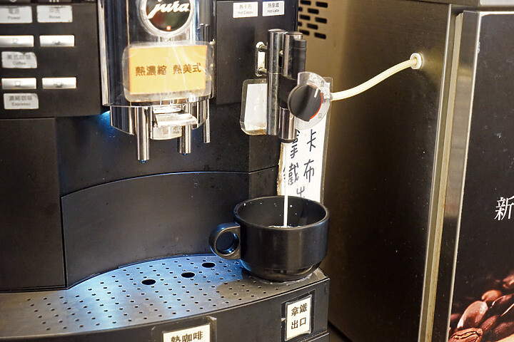 朋友是個咖啡控,看到咖啡機立刻來一杯拿鐵,不過小姐你好像放錯位子了誒
