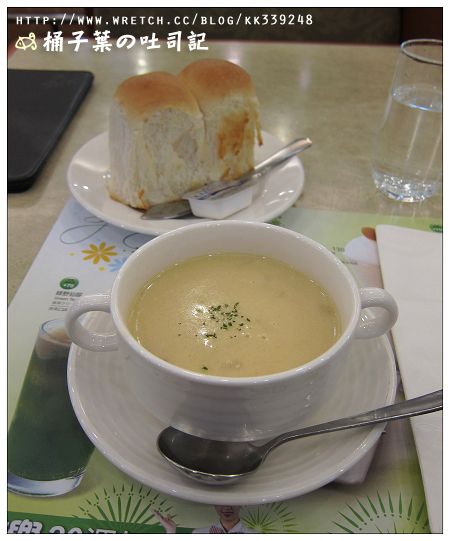 因為客人有點多,有小等了一下子,大概十分鐘左右,服務人員才送上了濃湯與麵包。