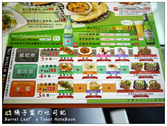 所以忍住~點主餐後只加了最便宜的米蘭套餐,主餐+$130有開胃菜與飲品。