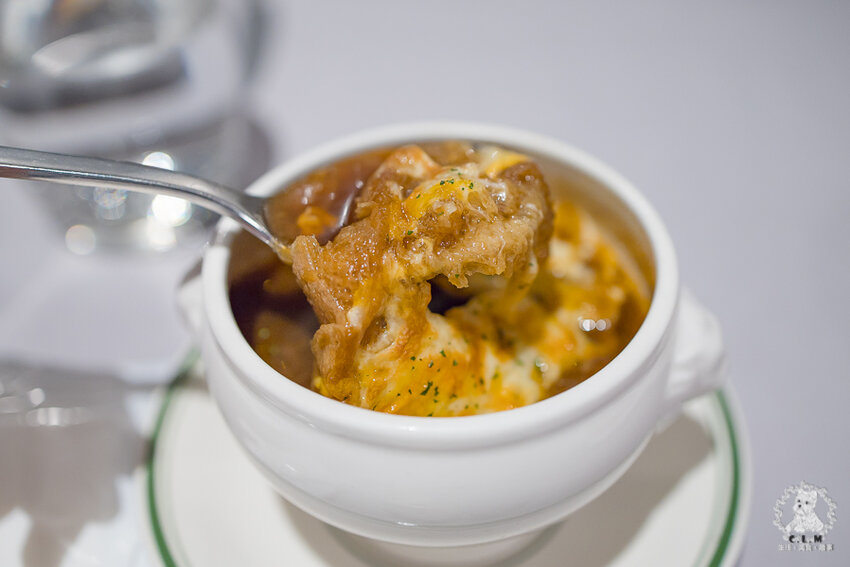 雅室的洋蔥湯味道就很棒,洋蔥炒到有點焦糖色澤,此時洋蔥的辛辣轉換成香甜,配上基底的高湯,喝起來不油不膩但又很濃郁,搭配表面焗烤的起司增添香氣,可以在偏爽口的湯頭中加入些奶香氣味。