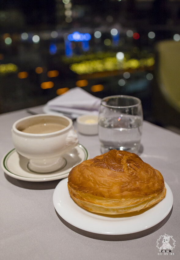 這酥皮送上後我們就聞到陣陣的酥皮麵香、奶油香氣,這塊酥皮好大一朵,服務人員會協助把上頭的酥皮轉移到另一個小盤,可以切小塊,這樣也比較容易食用,也比較容易沾湯吃。阿姐之前去仁愛店吃商業午餐時就點過這個酥皮濃湯,因為超酥很難控制,就像吃燒餅會掉些芝麻,他就掉了滿桌酥皮削,那時吃得超狼狽,不過不用擔心,貼心的服務人員會用專業的刮刀將桌面清潔乾淨,不過我這次幾乎沒掉,嘿嘿。