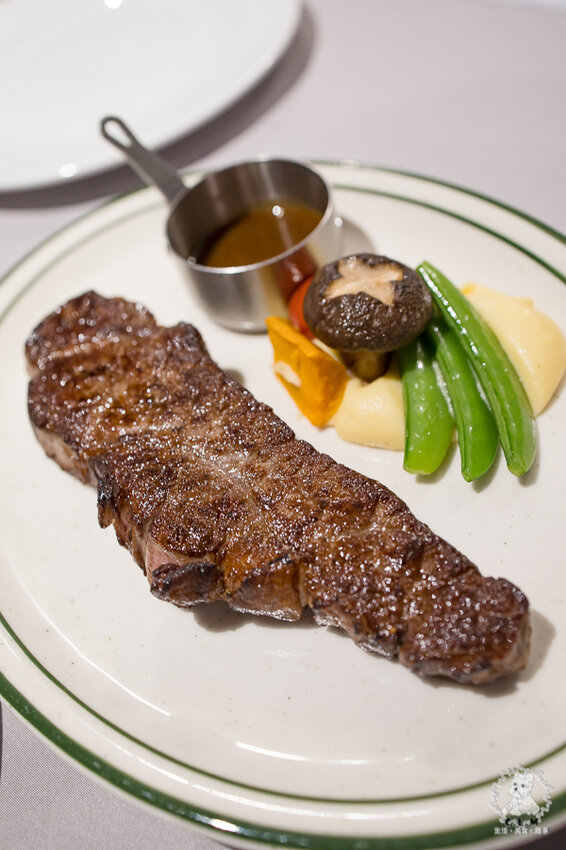 紐約客牛排是我也蠻愛的一種牛排,特色是有邊邊一排的厚筋,其他肉質油花相對比較少但肉質也比較軟嫩。
