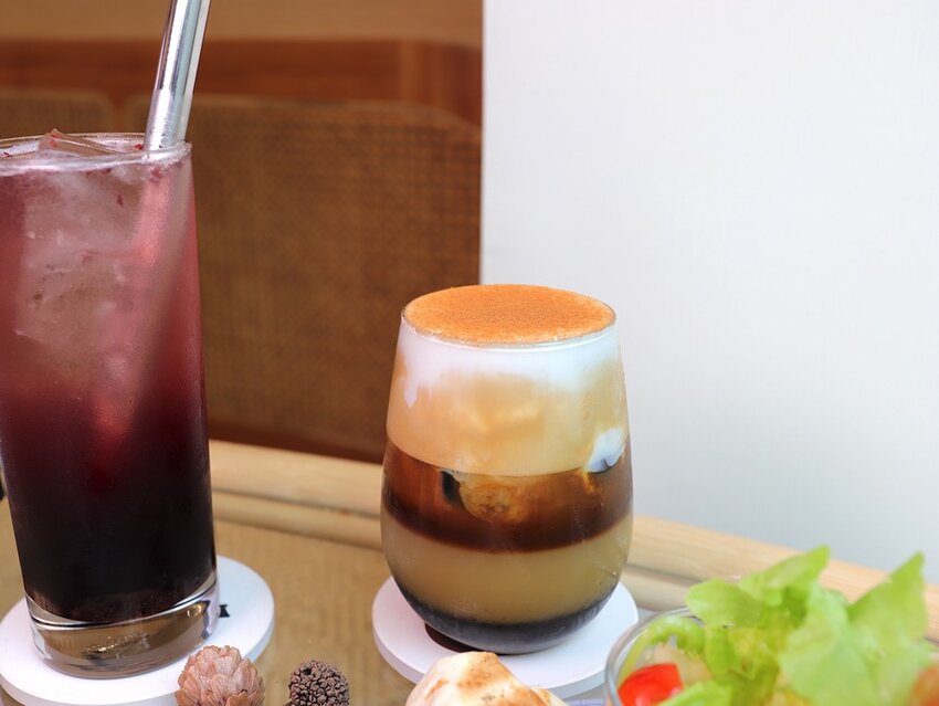 這杯 美美的漸層 特調咖啡調飲,則是店家老闆娘 的畢業論文 特製的創意飲品!