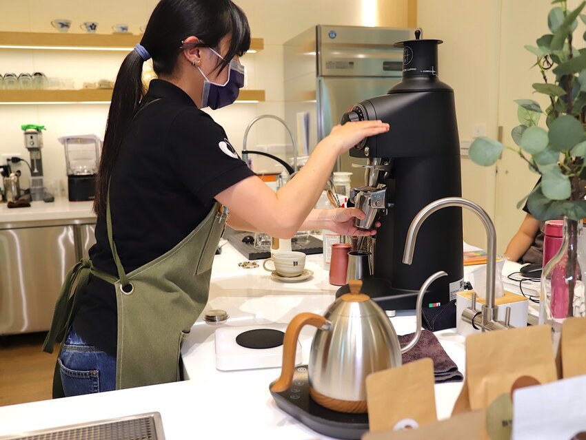 特別 跑到 吧台區,欣賞專業咖啡師 專注沖煮咖啡的過程~