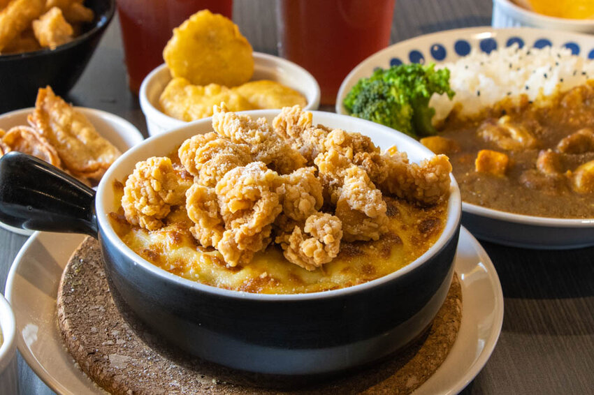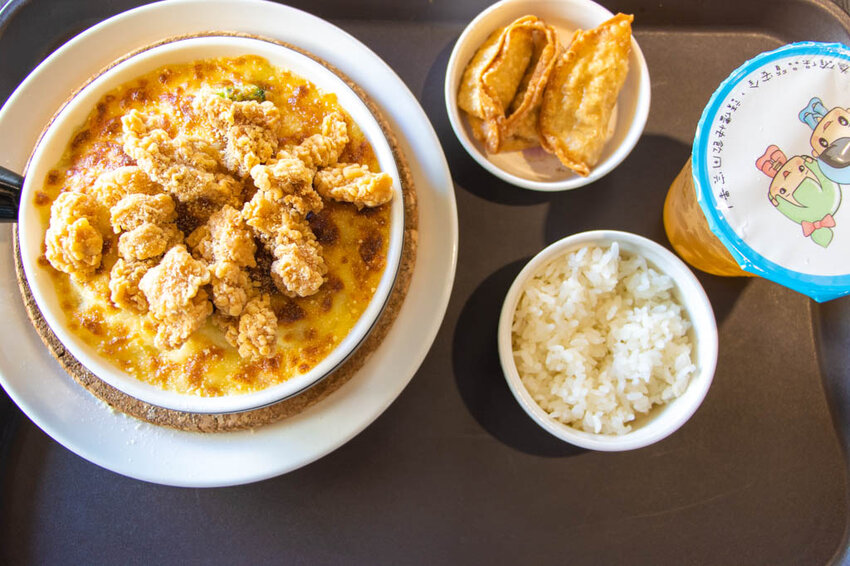 熱熱吃的時候,焗烤還有牽絲感,白醬的奶香也蠻明顯的,與咖哩飯相比,焗烤後的米飯吃起來較顯得軟些。
