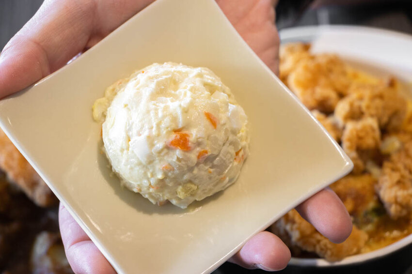 單點的蛋沙拉 30元,自從兒子的愛店-木門咖啡停賣蛋沙拉後,兒子就一直朝思慕想,只要看到蛋沙拉就會點來吃,沒想到此次來到自慢食堂,又讓他找到自已偏好的風味,而且離我們家也不遠,讓他直呼太棒了…..自慢食堂家的蛋沙拉吃起來很家常,綿密的馬鈴薯泥中帶著微甜,蛋的香氣也有出來,喜愛蛋沙拉的朋友很推薦試試。