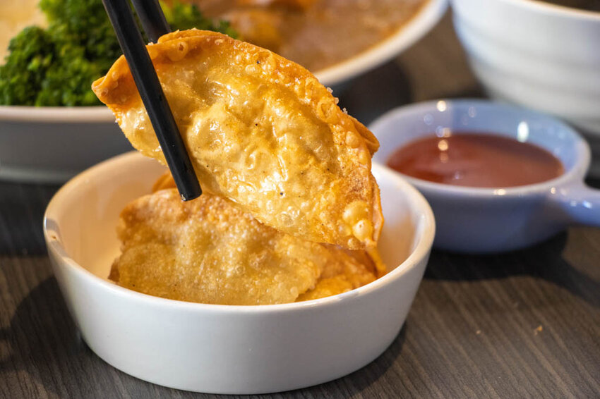 套餐裡的炸水餃3顆,水餃的外皮炸至金黃,咬起來又酥又脆的,有點像餅乾,裡頭的內餡雖然不多,但搭著外皮一起吃還不錯。