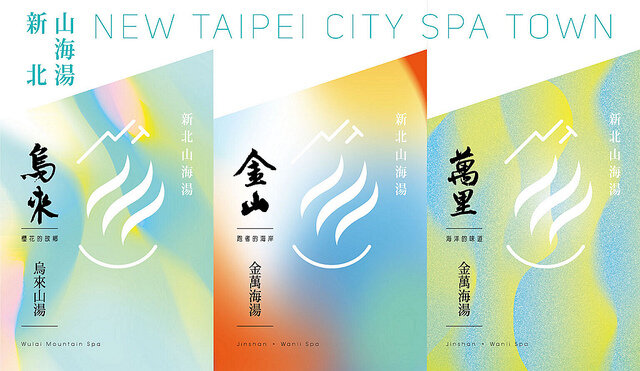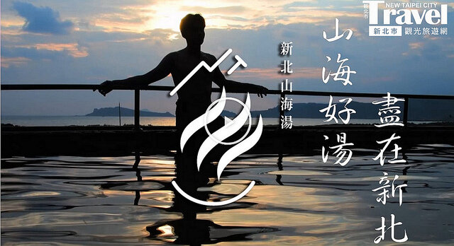 新北山海湯的品牌主視覺設計,由國際級設計師蕭青陽設計,以簡潔線條呈現,山形隱藏了新北市 New Taipei 的英文縮寫 NT,三條斜波紋代表溫泉、海浪及新北的山川瀑布,而圓弧曲線既完整了溫泉的意象,也是新北市對遊客們的歡迎邀請。