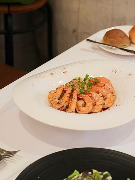 馬賽鹹魚鮮蝦細扁麵香辣入味,細扁麵軟硬適中,撥好的鮮蝦鮮甜!