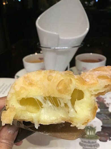 相當討喜,狀似口袋撒上糖粉,內裡鼓起蘊藏著濃郁的起司,集