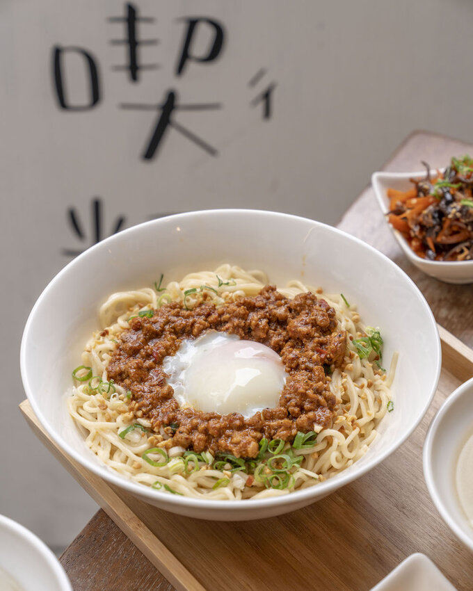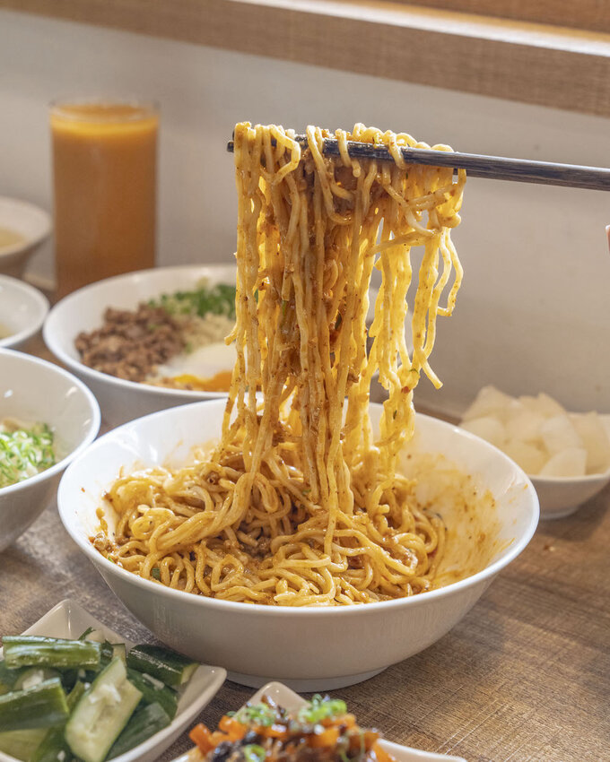 麻辣擔擔乾拌麵的麻辣更加濃郁,特殊的麻醬風味和辣合而為一非常的夠味,再拌入半熟的溫泉蛋液香氣十足,喜歡吃辣的朋友不妨挑戰看看。