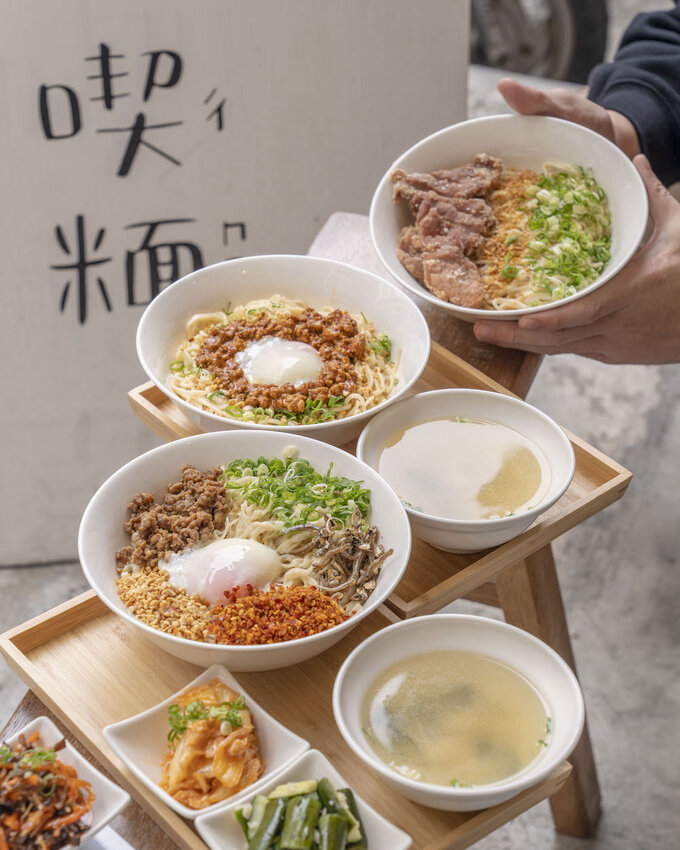 來到「喫糆」必點的就是這碗招牌辣椒板麵,滿滿的麵條上鋪滿了小魚乾、花生粒、半熟溫泉蛋、肉燥和蔥,最後撒上了店家獨門的辣椒粒,香香辣辣的滋味在口中化開真的太過癮。