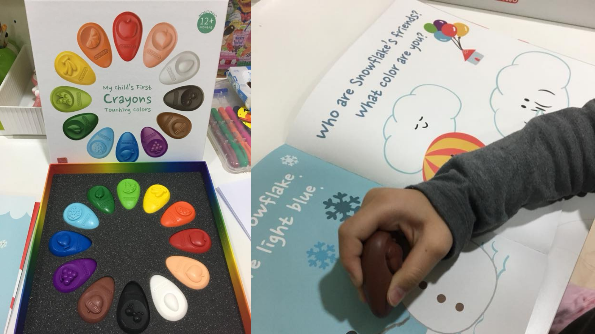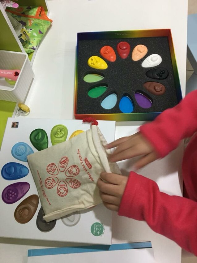 其他很普通的拿來畫畫、學抓握這種事,就不用我們家老嬰來示範;但若是1歲半左右剛開始畫畫還蠻適合的,畢竟它不沾手、蛋形抓握無害於手部發展、也沒什麼臭味這些優點真的蠻值得入手!