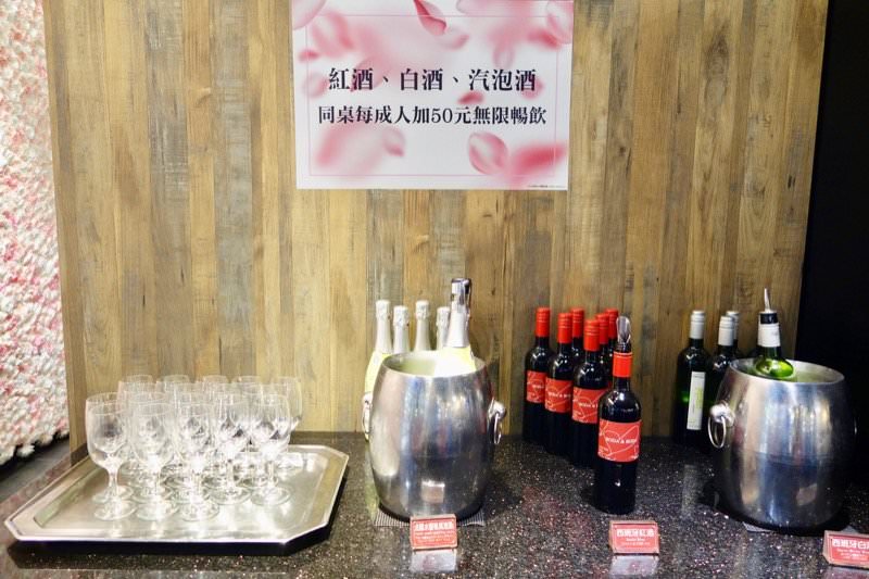 ▼愛喝酒的也可以加點紅酒、白酒、氣泡酒,只要每人加50元就可以無限暢飲!
