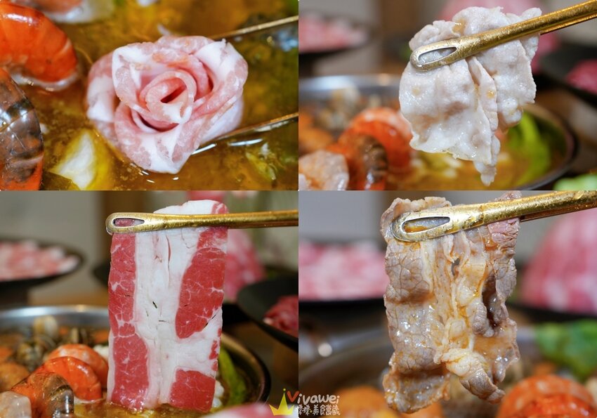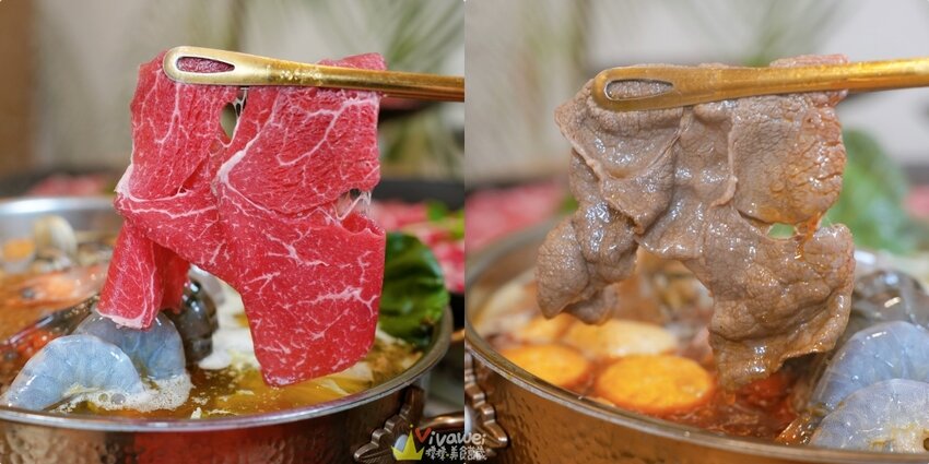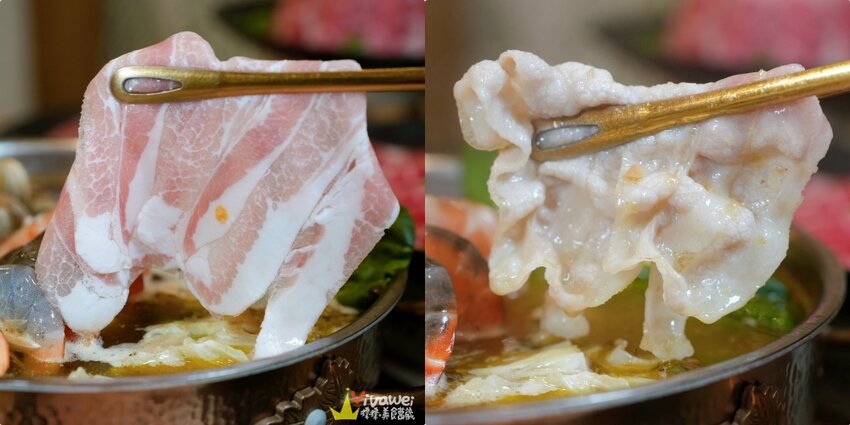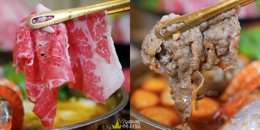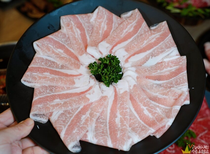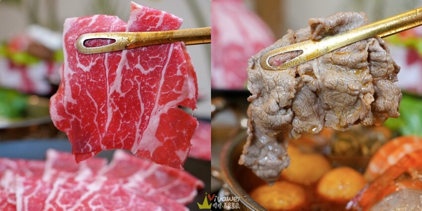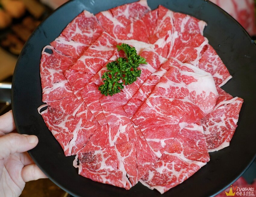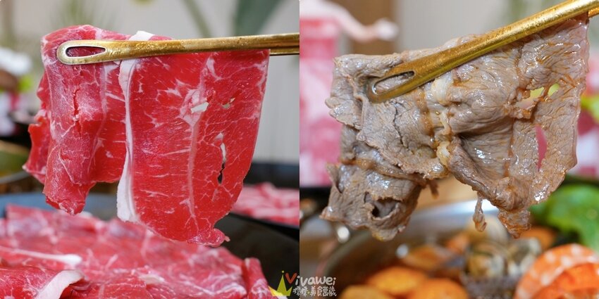 ▲美國Choice熟成嫩肩牛的厚度剛剛好~肉片的油花不多~大約涮個5-7分熟就能享用~口感比較偏紮實~