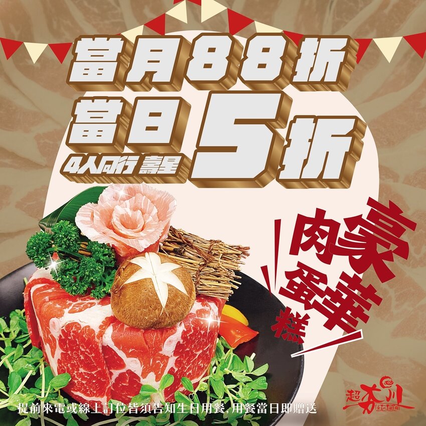 當日壽星用餐~即可享四人同行~壽星5折優惠!當月壽星用餐~即可享壽星88折優惠!