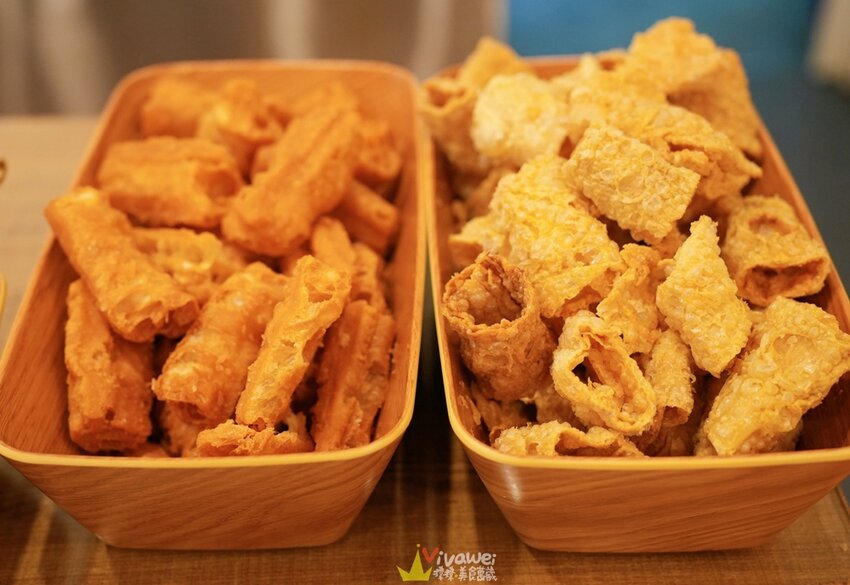 ▲麻辣鍋必備的油條和鍋物必備的豆皮~也是放在自助區自行取用喔!
