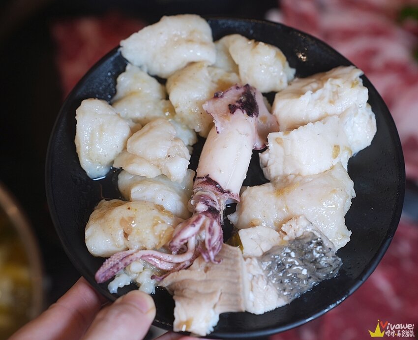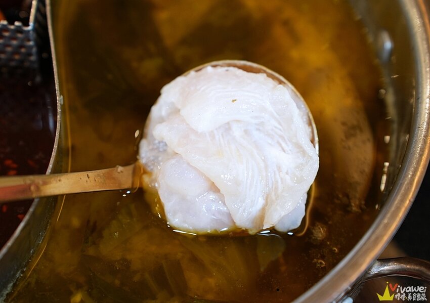 ▲因為成都酸菜魚的湯底其實是沒有魚肉的~店家最推薦的是搭配巴沙魚一起煮!我們則是點了魚肉拼盤~有鮮嫩巴沙魚~東港鮮鯛魚~金目海鱸魚!將三款魚肉一起放到鍋中煮~