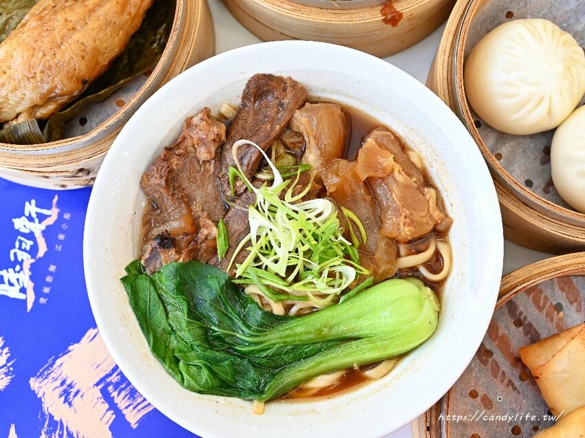 陸羽軒主食除了煲飯,牛肉麵也是必點,糖糖點的是紅燒半筋半肉牛肉麵,這裡的紅燒湯頭偏山東口味,採用醬油、香料下去燉煮,香料味比較重,湯頭喝起來偏清甜,不像台灣牛肉麵比較重鹹重辣