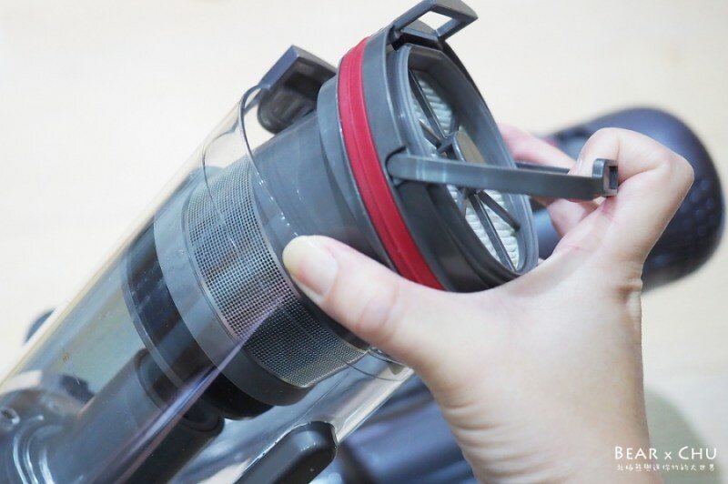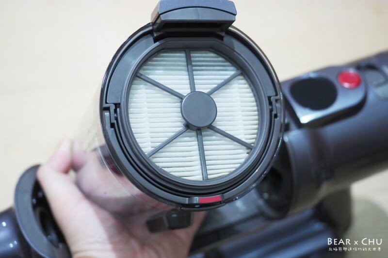 小狗T12無線吸塵器有六道過濾系統,可以把微塵有效攔截起來,集塵盒是用磁吸固定的,是要取下時候很方便的設計,將裡面濾網拔出來就可以清理裡面的髒東西,而集塵筒與金屬濾網是可水洗清潔的,所以整理起來是很方便的,但要記得陰乾後才能裝回主機使用。