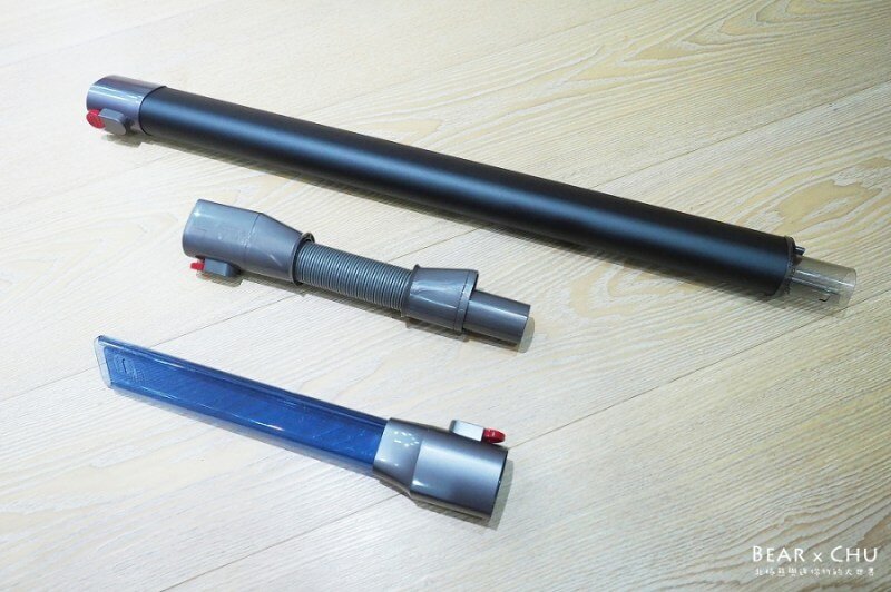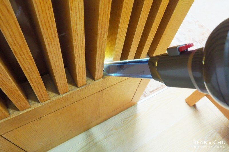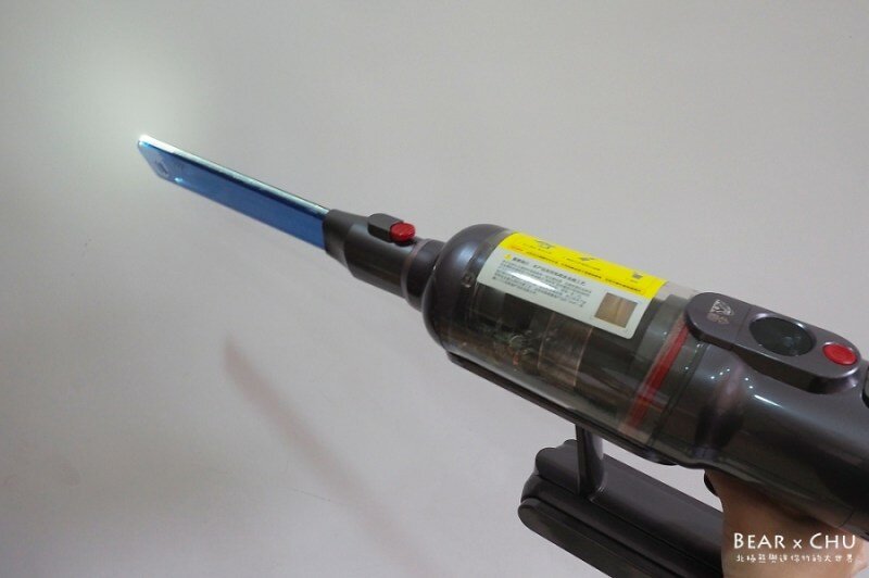 小狗T12無線吸塵器還有這款一拿出來熊寶就說好酷的LED長扁刷,因為造型和燈光的設計拿起來好像光劍一樣(笑),這款可以用來消滅狹窄或夾縫處的灰塵,因為LED光線所以也是能看得清清楚楚,十分方便也好用。