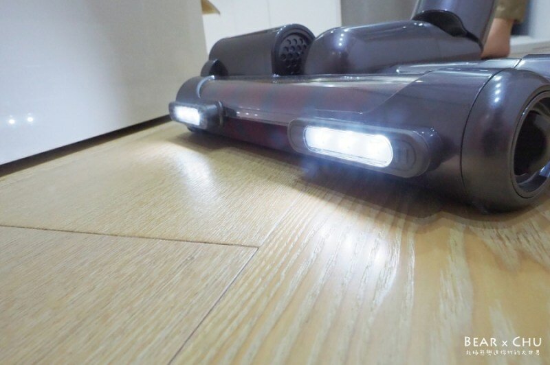 小狗T12無線吸塵器的雙滾電動地刷蠻好用的,像我們家有塑膠木地板也有凹凸地磚,不管在哪個上面吸起來都很順也很乾淨,前面有燈光照射的設計,椅子底下或是牆角等也能清楚看到有沒有灰塵或頭髮,就不怕漏掉哪裡沒吸到。