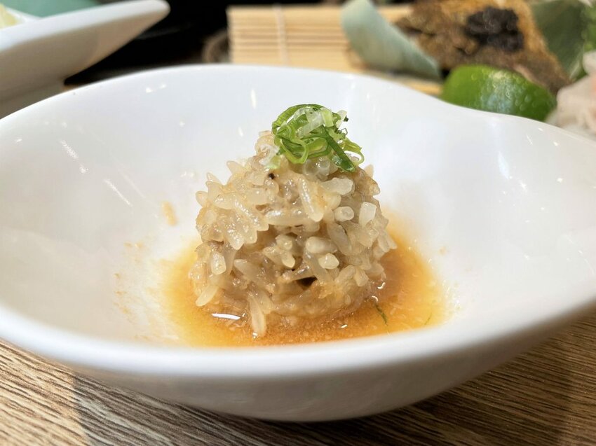 簡單的搭配些許芥末醬油,就能品嚐到魚肉的鮮甜,肉質非常甘美,隨著口腔的溫度融化了魚肉中的油脂,爆發出來的香味和冰涼的魚肉沾上舌尖那種溫度感讓人非常記憶深刻。