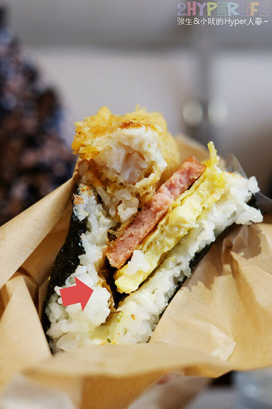 可以看到夾料的最裡頭也是有炒柴魚片增加鹹香的滋味,不會吃到最後只剩滿口白飯