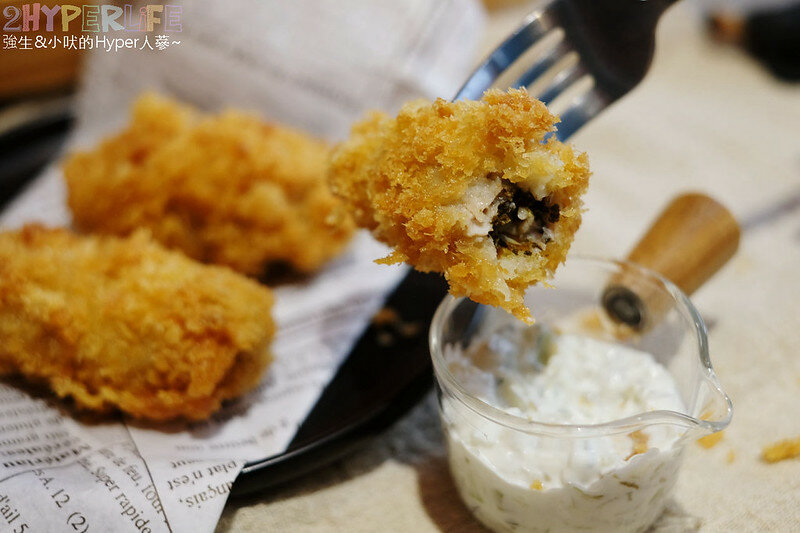 這一道外面也是炸得很酥脆不會過頭,中間的牡蠣口感很滑嫩帶著濃厚海味,一旁附的塔塔醬吃得出有香料的感覺,算是清爽的風味,建議搭配塔塔醬一起吃比較不會有負擔感唷