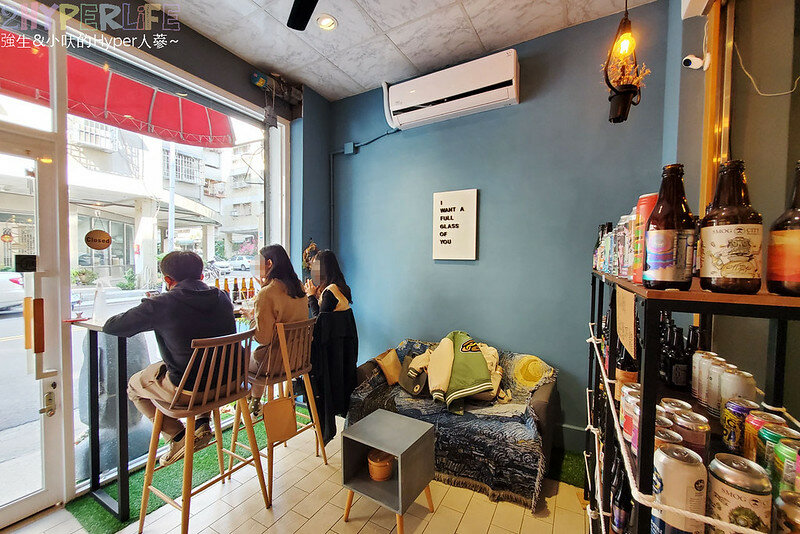 進到店內會先看到一整櫃的啤酒瓶?!是的我們沒走錯,因為魚火巷白天賣得是朝食沖繩飯糰,到了晚上搖身一變成為餐酒館耶!使用同一個空間賣二種不同種類的餐點也太妙啦,不過我們都想吃
