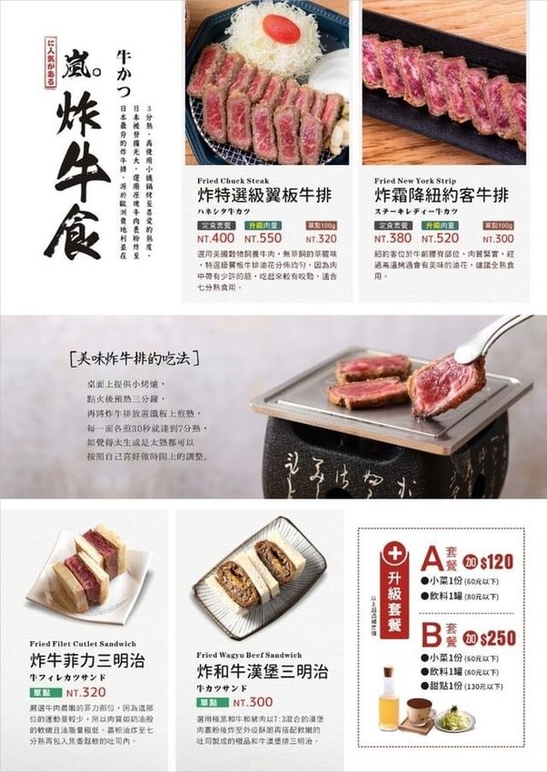 嵐山炸牛排菜單