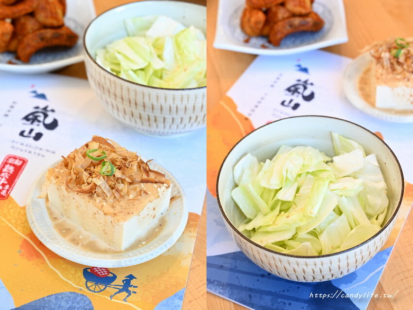 雙人套餐的前菜糖糖選了胡麻豆腐及加價10元的鹽拌高麗菜,胡麻豆腐是採用嫩豆腐搭配自製胡麻醬,最撒上滿滿的柴魚片,口感軟嫩,帶著濃郁的胡麻香及柴魚的香氣,另一份小菜鹽拌高麗菜還蠻特別的,採用生的高麗菜,拌入特製醬汁,吃的到高麗菜的清甜及香脆口感,微鹹滋味吃起來還挺涮嘴的