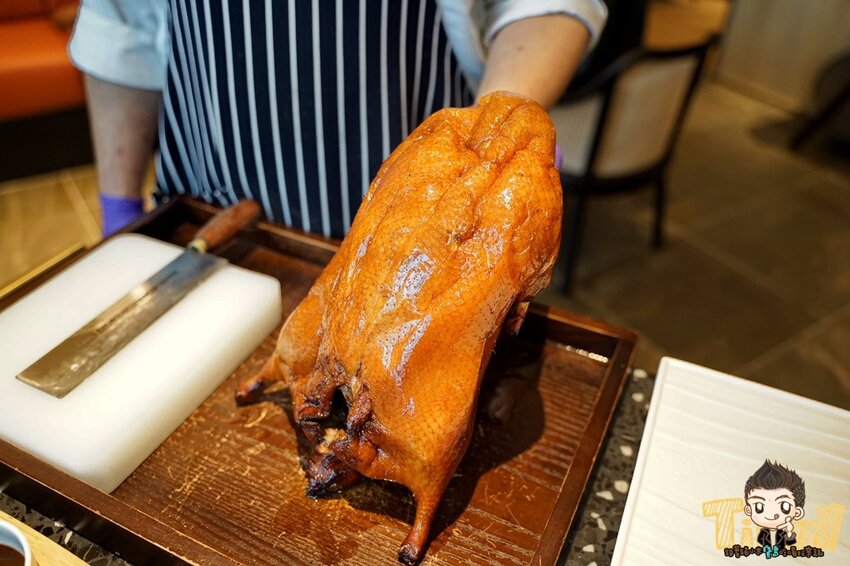 主廚會以多種藥材醃製入味,外皮淋上麥芽糖,經過風乾8~10小時的複雜工序,再用港式掛烤的方式來烤出肥美的烤鴨,光看外表就讓人肚子餓起來喔。