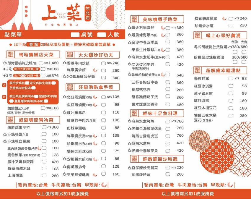 👉上菜 片皮鴨專賣店菜單目錄搶先看