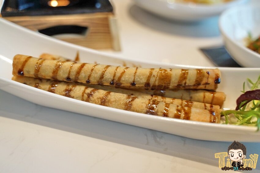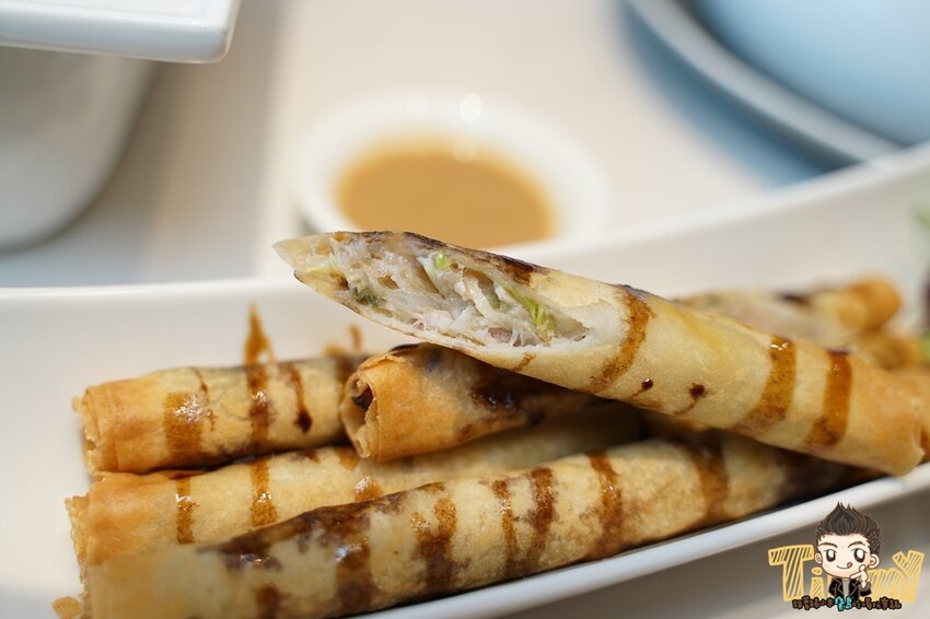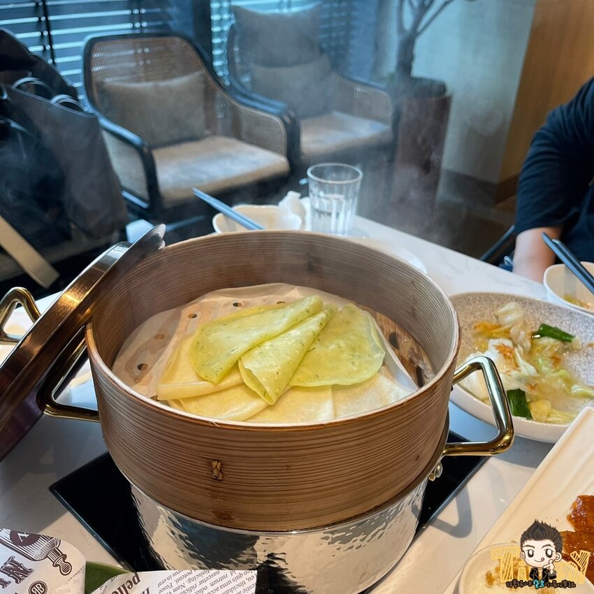 餅皮有著雙色(白色麵皮及荷綠餅皮),綠色點綴蠻漂亮的,店家也很貼心,怕大家吃得慢而造成餅皮冷調口感不好,桌面有提供電磁爐,可以幫餅皮一直加熱。