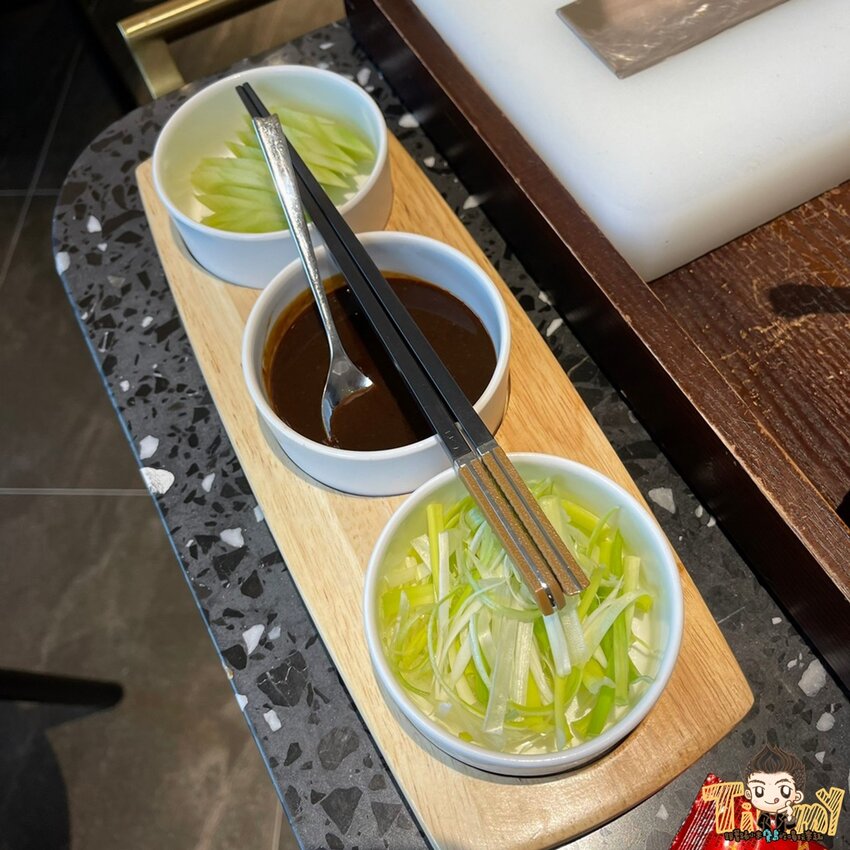 片鴨真的不貴,以大隻櫻桃鴨來說,一隻只要1480元,附上餅皮、三星蔥與甜麵醬。