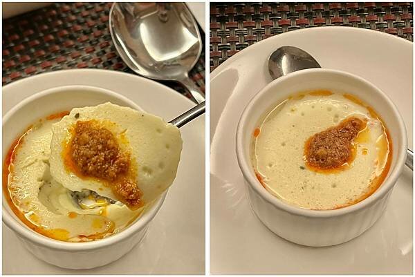 套餐的蒸蛋,上頭加上點海鮮醬,口感非常美味軟嫩,一口接著一口鮮味十足,開啟美味的鐵板燒料理