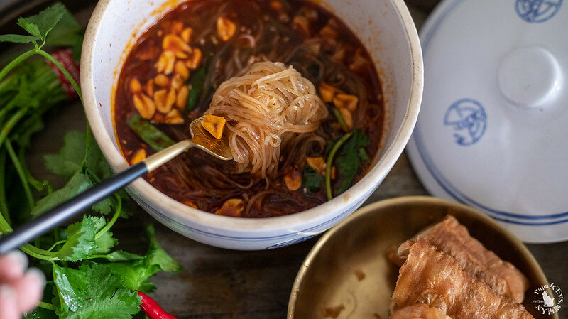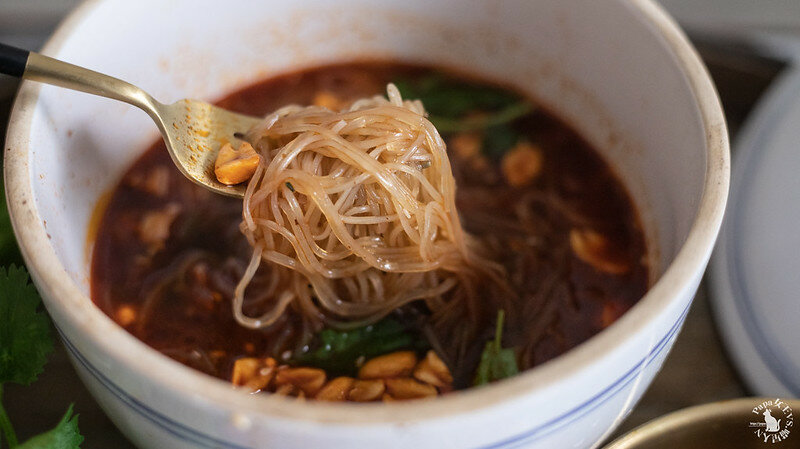 6分鐘後的酸辣粉,兼具麻辣香氣有點張揚的黑醋把這碗的美味提升到一種老少皆宜的口感,平常一口辣都不吃的老奶奶-大貓娘竟然說這個好吃,不過他老人家可愛是把這碗酸辣粉拿來配白飯一起吃!