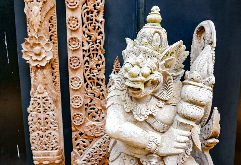 據說塔頑本身也是一個宗教狂熱者,是以黑廟雖不是廟,卻能建築的內外中發現許多泰國的神、佛雕刻作品。