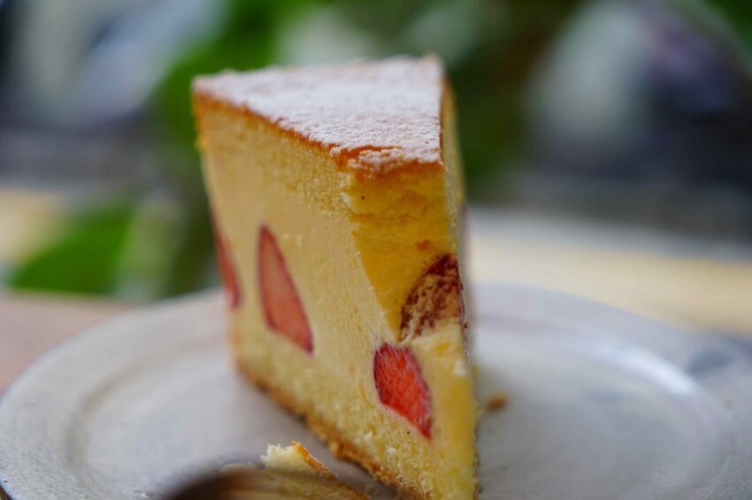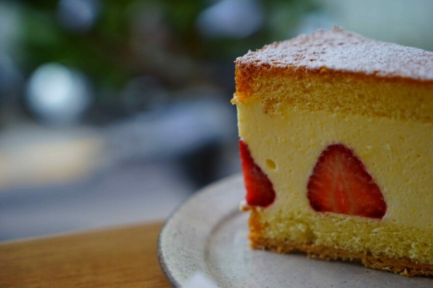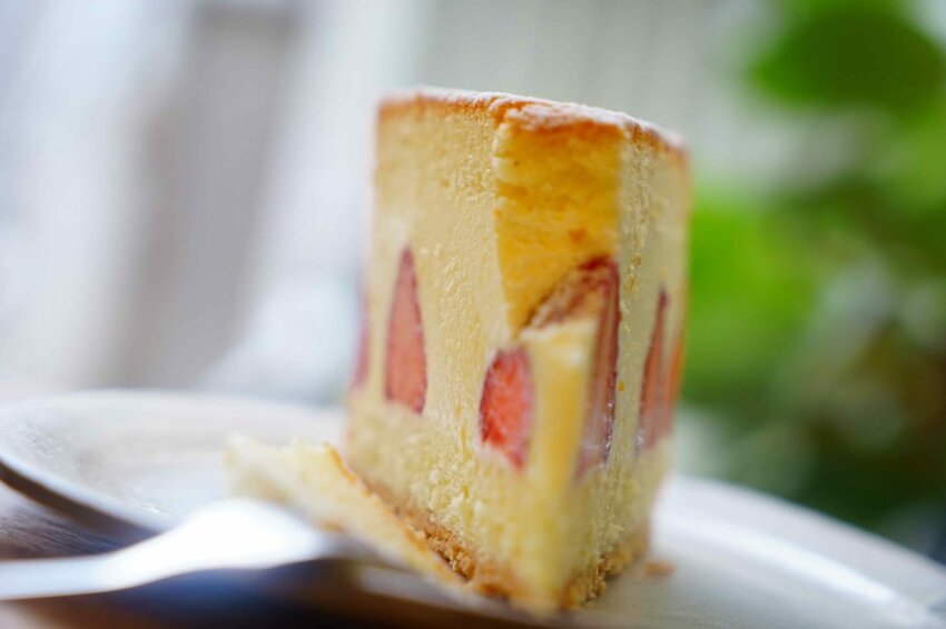 蛋糕夾餡的奶油起司濃郁卻清爽,加上新鮮的草莓,草莓新鮮爽口與奶油起司特別的搭,加上蛋糕口感層次很豐富,入口後合而為一,吃得到草莓的香氣與蛋糕的口感,單吃或是搭配黑咖啡都很適合!