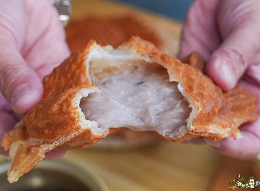 一整個好爆料,滿滿的芋頭餡料、綿密帶有甜味,搭配外酥香氣的鯛魚燒,芋頭控必吃