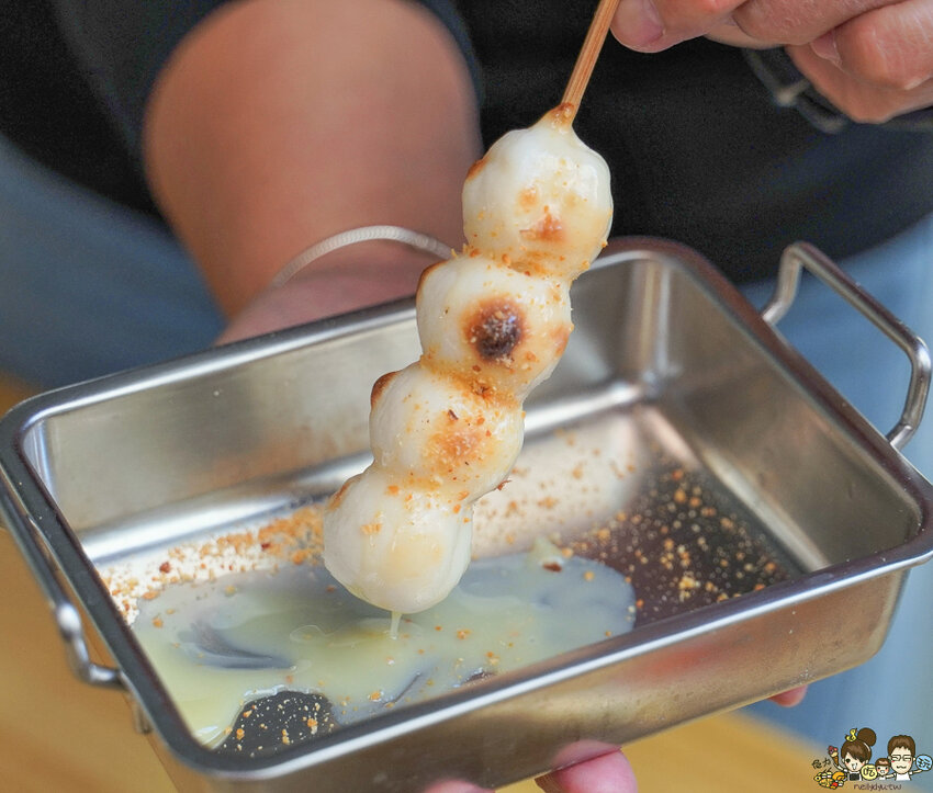 居然還可以吃到日式。烤糰子,淋上邪惡的煉乳,灑上花生粉提味