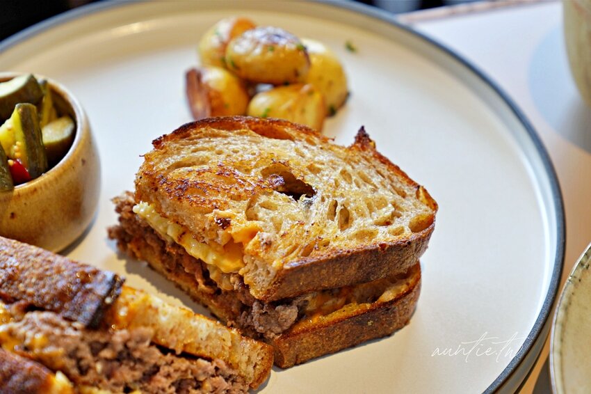 酸麵包口感味道都很棒,夾了熟成白切達起士,牛肉漢堡排吃起來多汁沒腥味,很喜歡酸麵包烤的酥脆的口感,還可以搭配酸華瓜解解膩,這款牛肉起士酸麵包三明治很有水準!