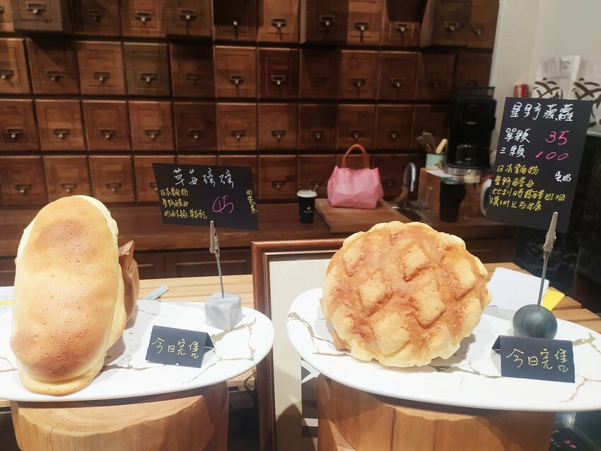旁邊甚至還擺了本相當詳細的食譜介紹,一顆$35,三顆$100的菠蘿麵包其實也不會特別貴