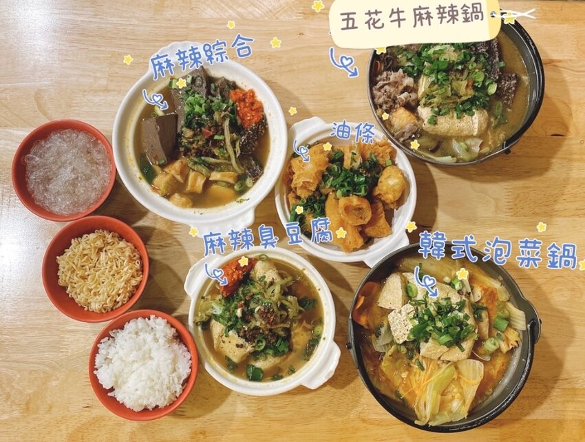 麻辣臭豆腐、綜合麻辣鍋、五花牛麻辣鍋和韓式泡菜鍋,一次火力全開,讓人看得口水直流,到底要選誰啦~~