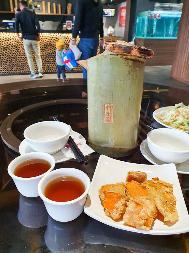 趁著寒假開始,剛好要去溪頭玩耍就順便來紫南宮還金,一下交流道正準備要左轉的時候,赫然發現一家很氣派的餐廳,定神一看居然是關子嶺最有名的竹香園耶!每次泡湯必吃已經N訪,可惜因為疫情這兩年都沒有去泡湯,超想念紫蘇梅子雞的美味,本來說好要去竹山市區吃肉圓,立馬跟M先生更改午餐計畫,變心吃雞囉!